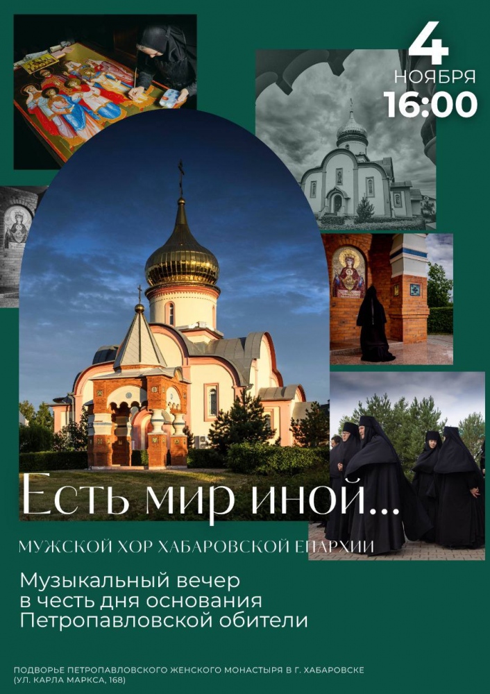 4 ноября 2025 года на подворье Петропавловского женского монастыря состоится музыкальный вечер мужского хора Хабаровской епархии в честь основания Петропавловского женского монастыря «Есть мир иной...».