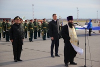 В свою очередь клирик Спасо-Преображенского кафедрального собора иерей Сергий Пустенький благословил военнослужащих на выполнение поставленных перед ними задач, вознес молитву Господу о всех присутствующих воинах и окропил их Святой водой.