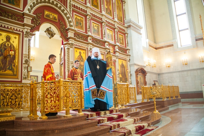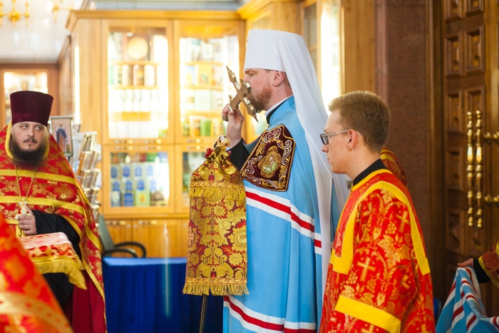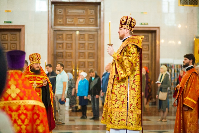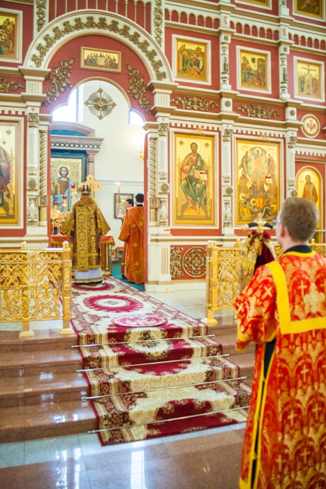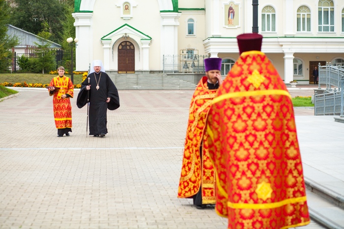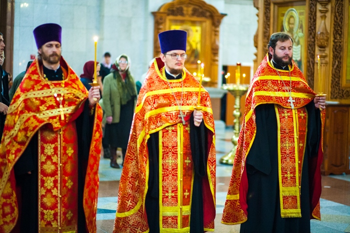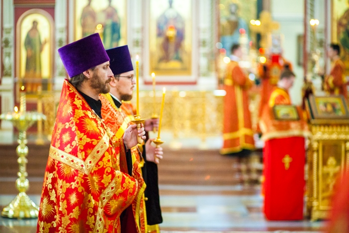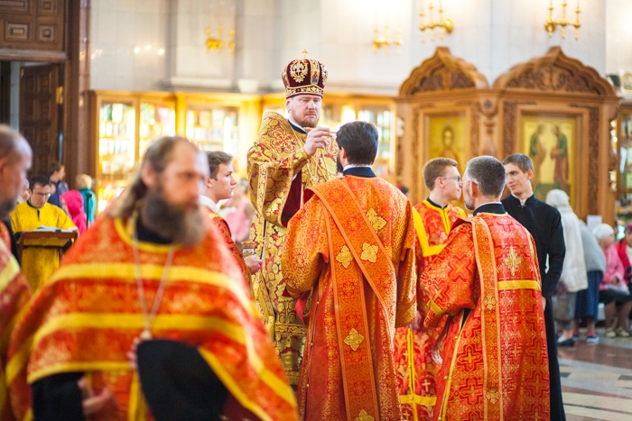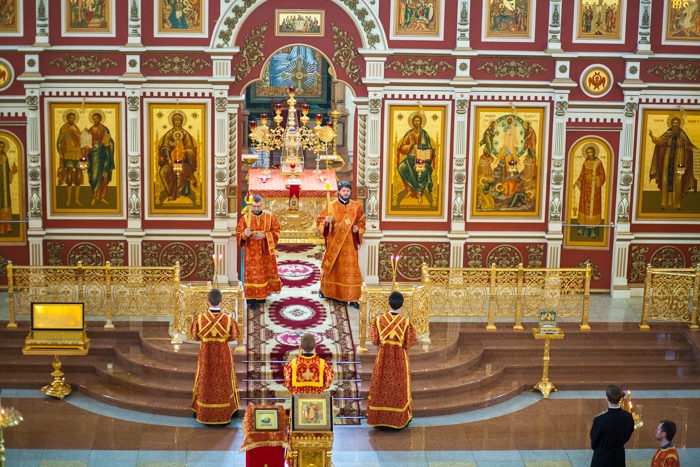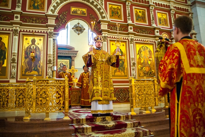 Всенощное бдение накануне дня Усекновения главы Пророка, Предтечи и Крестителя Господня Иоанна в Спасо-Преображенском кафедральном соборе Хабаровска. 10 сентября 2016 года