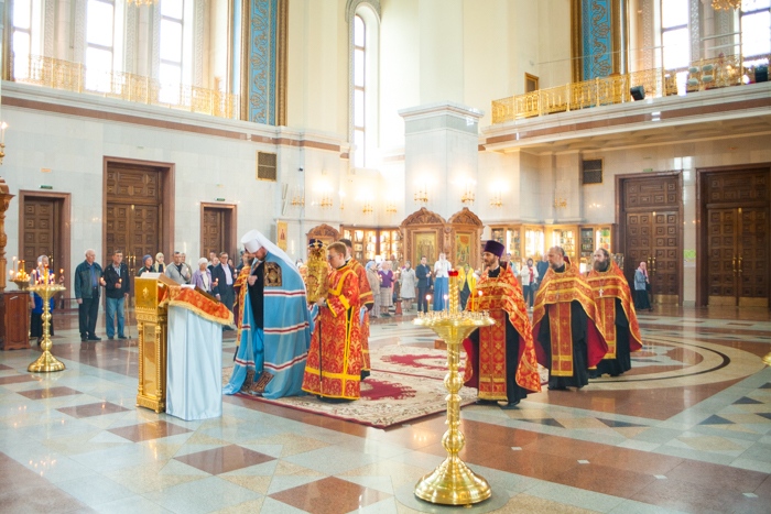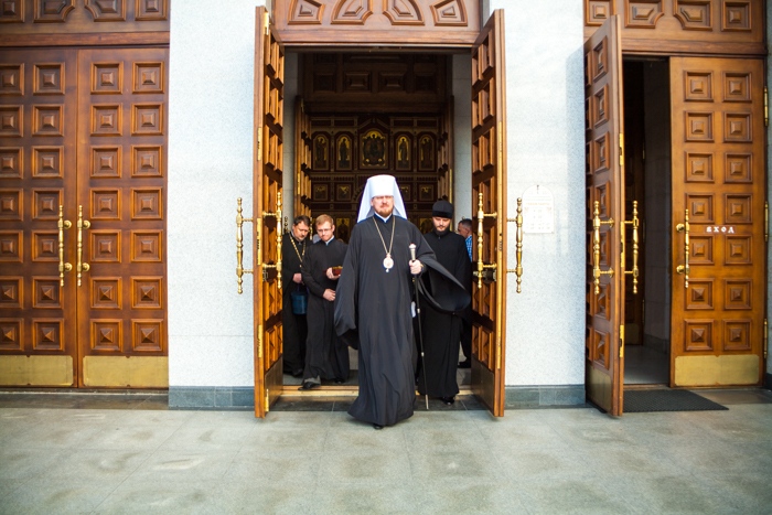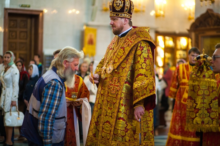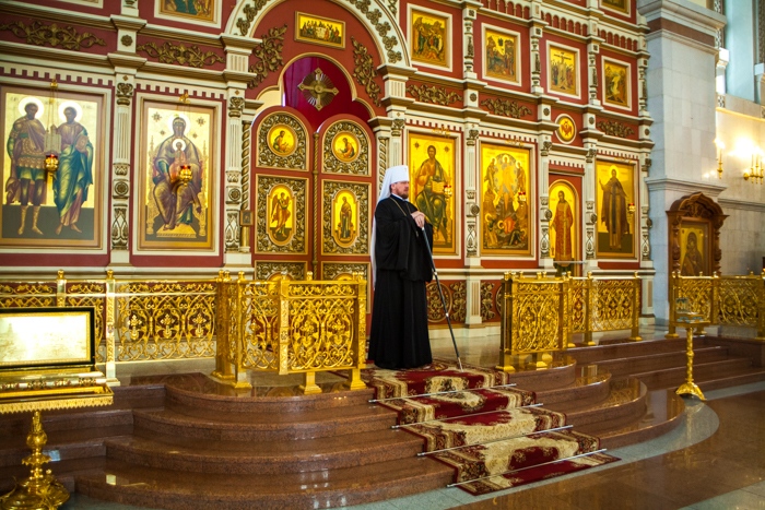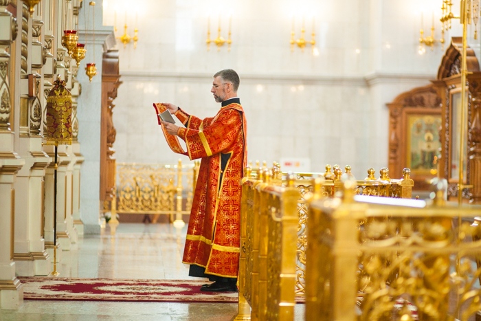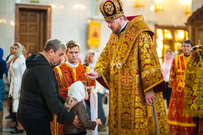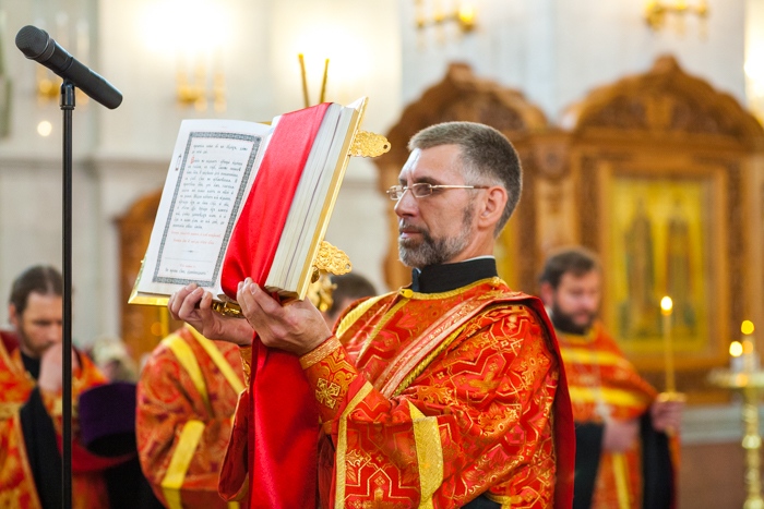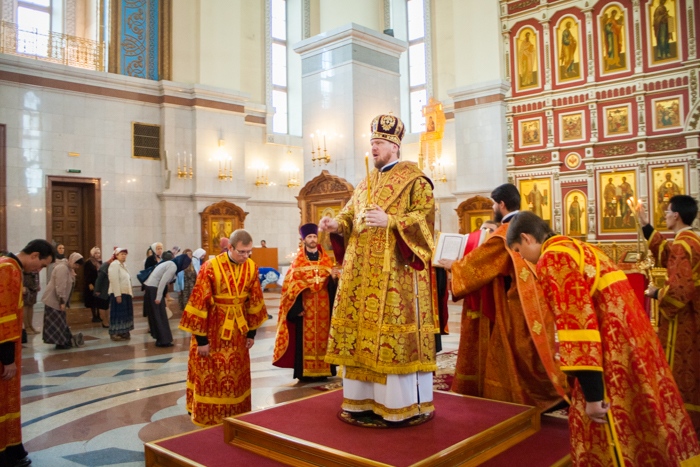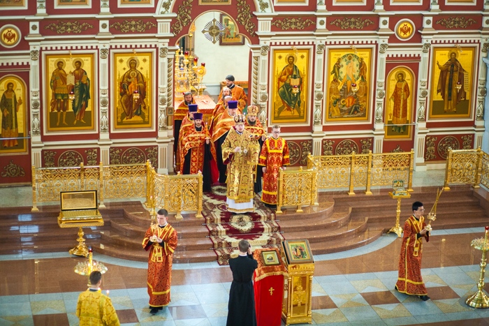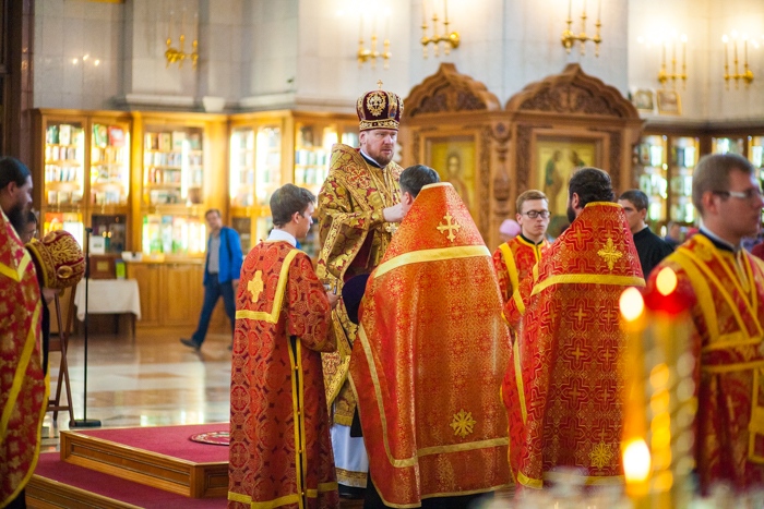 Всенощное бдение накануне дня Усекновения главы Пророка, Предтечи и Крестителя Господня Иоанна в Спасо-Преображенском кафедральном соборе Хабаровска. 10 сентября 2016 года