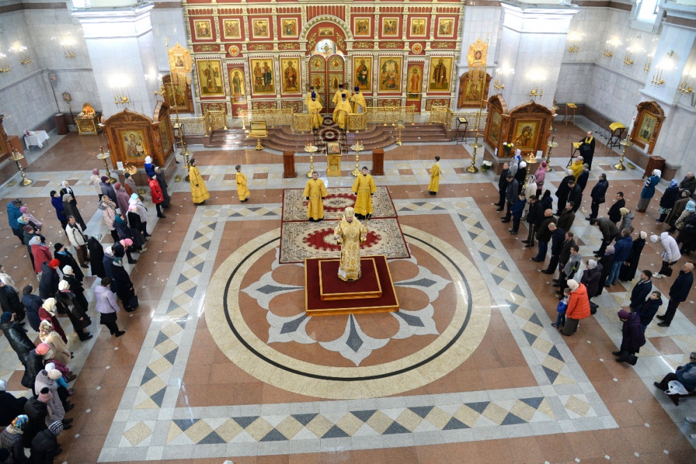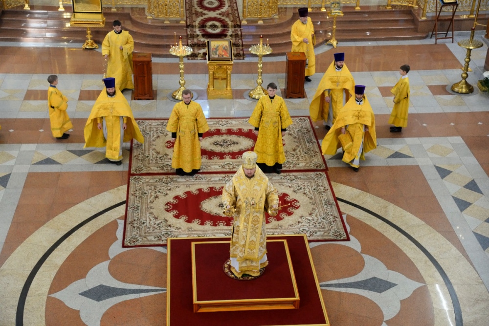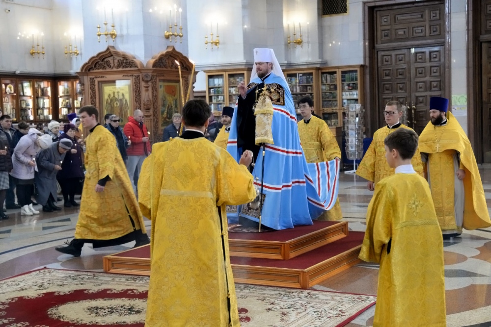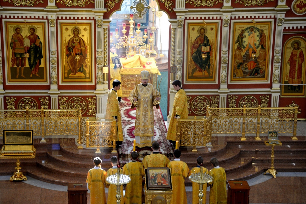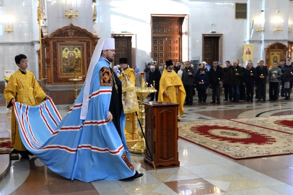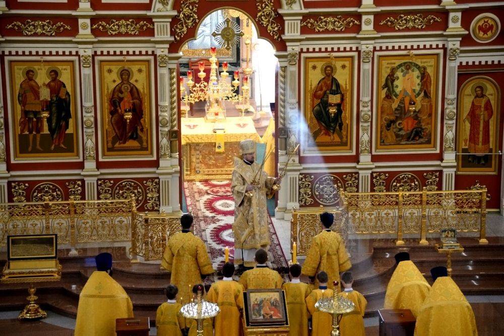 В Неделю 20-ю по Пятидесятнице митрополит Владимир совершил Божественную литургию в Спасо-Преображенском кафедральном соборе. 22 октября 2017 г.