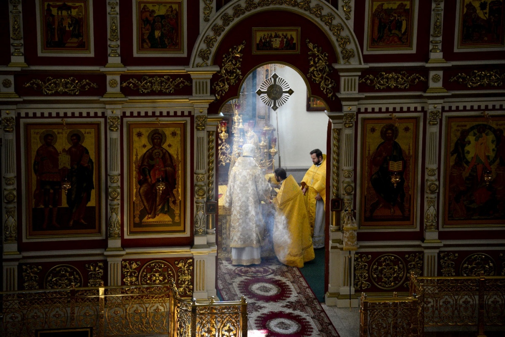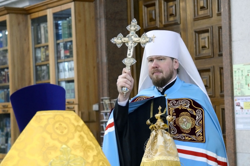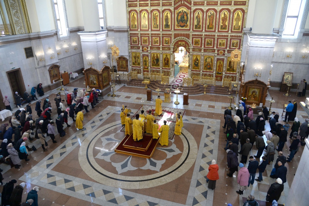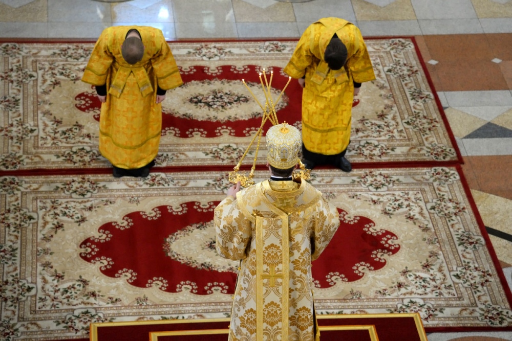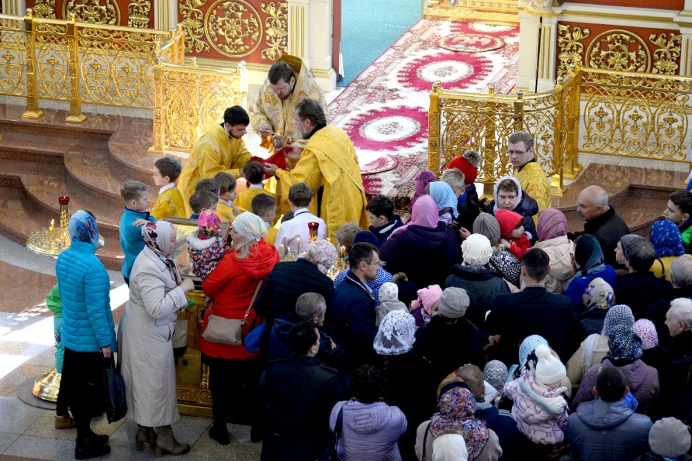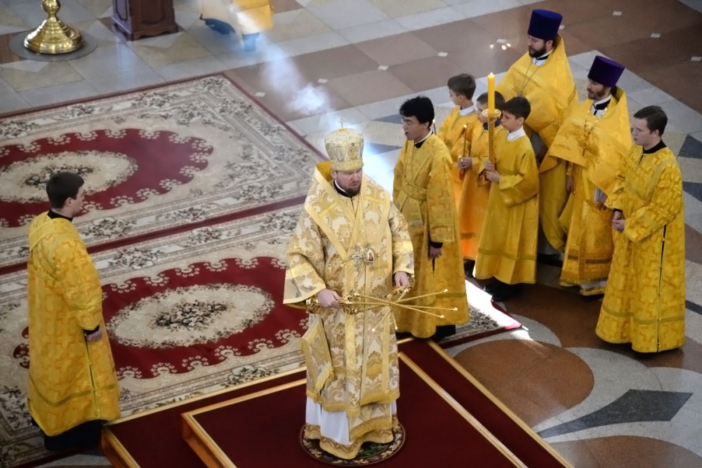 В Неделю 20-ю по Пятидесятнице митрополит Владимир совершил Божественную литургию в Спасо-Преображенском кафедральном соборе. 22 октября 2017 г.