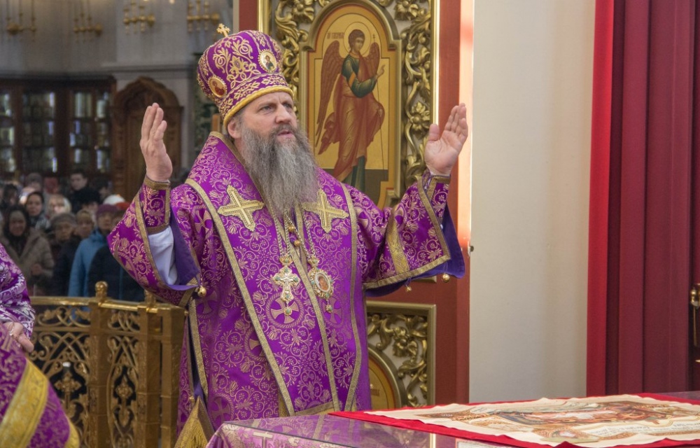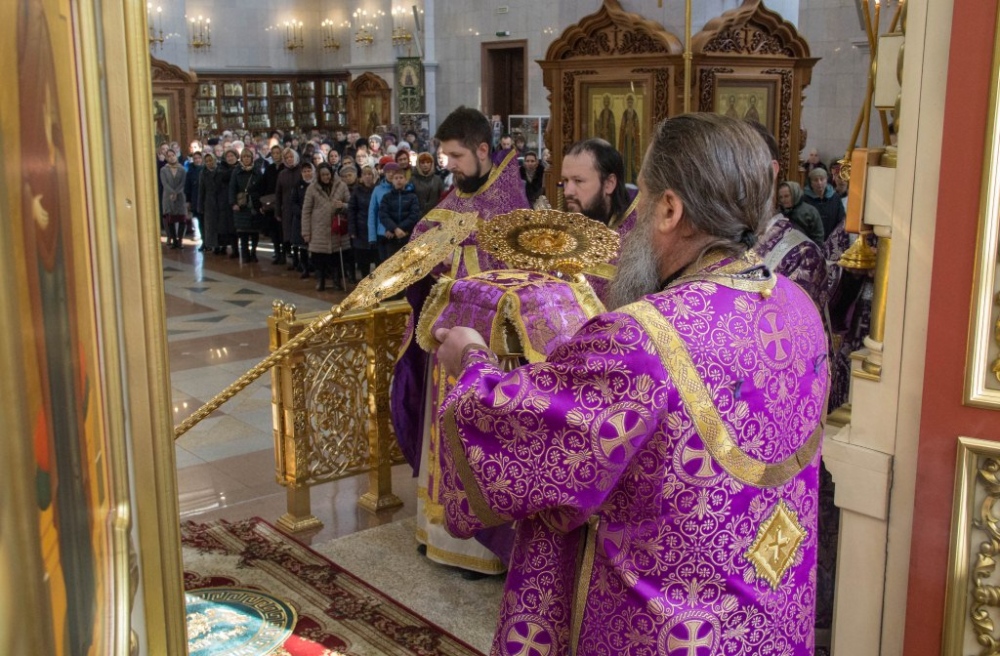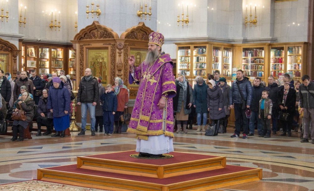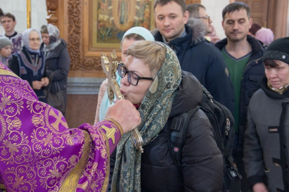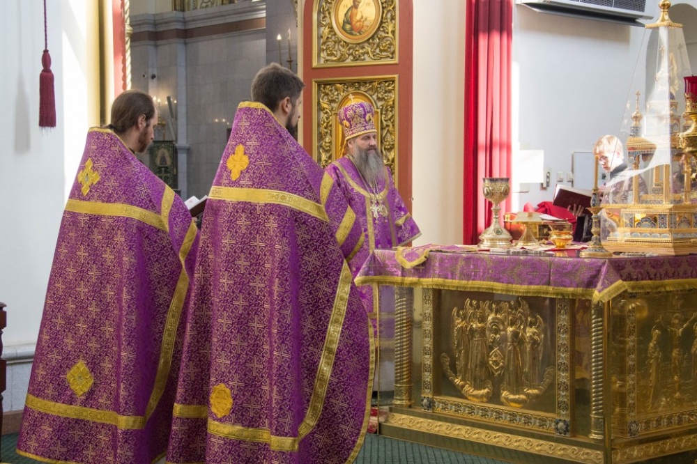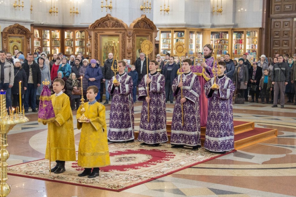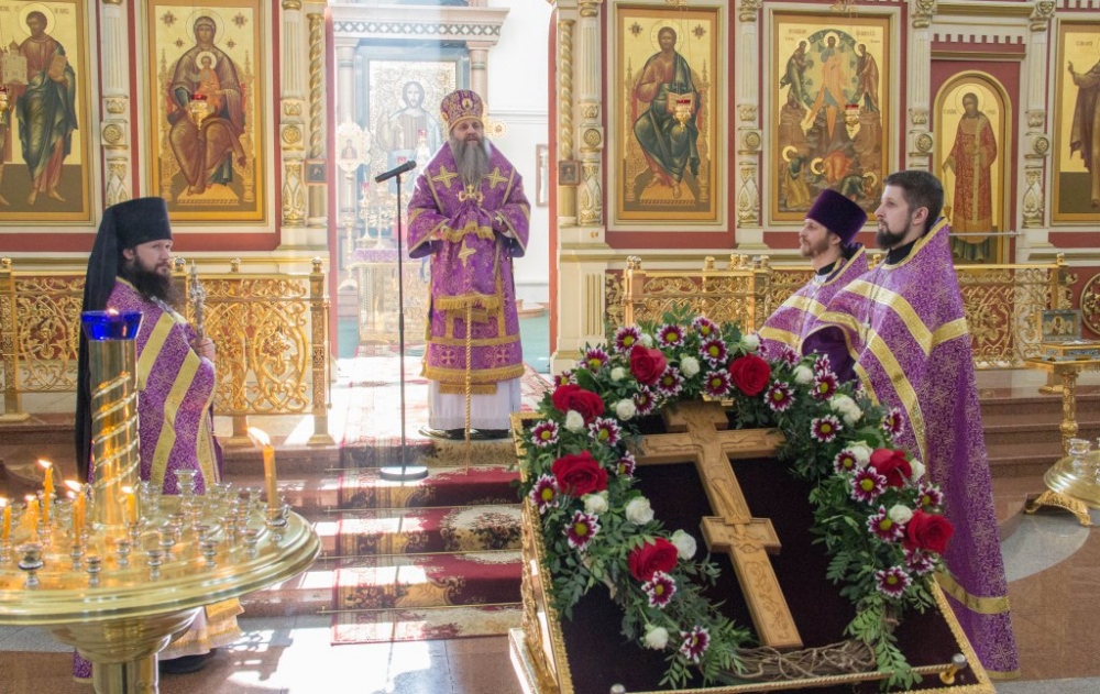 В Неделю Крестопоклонную митрополит Артемий совершил Божественную литургию в Спасо-Преображенском кафедральном соборе. 31 марта 2019 г.