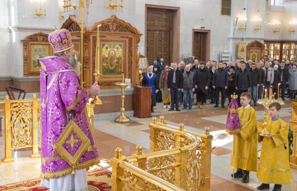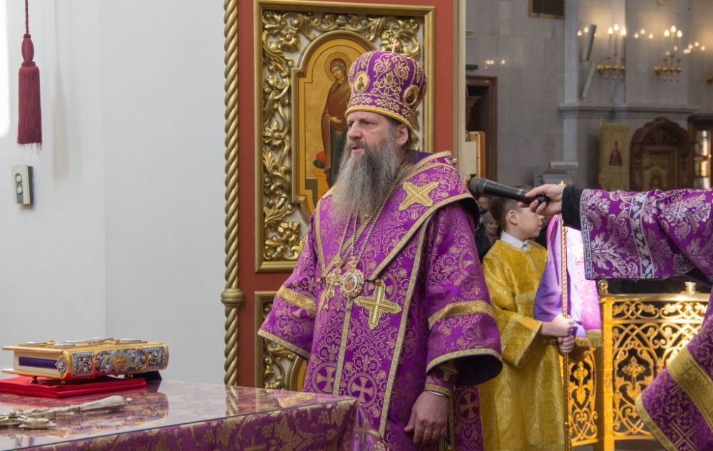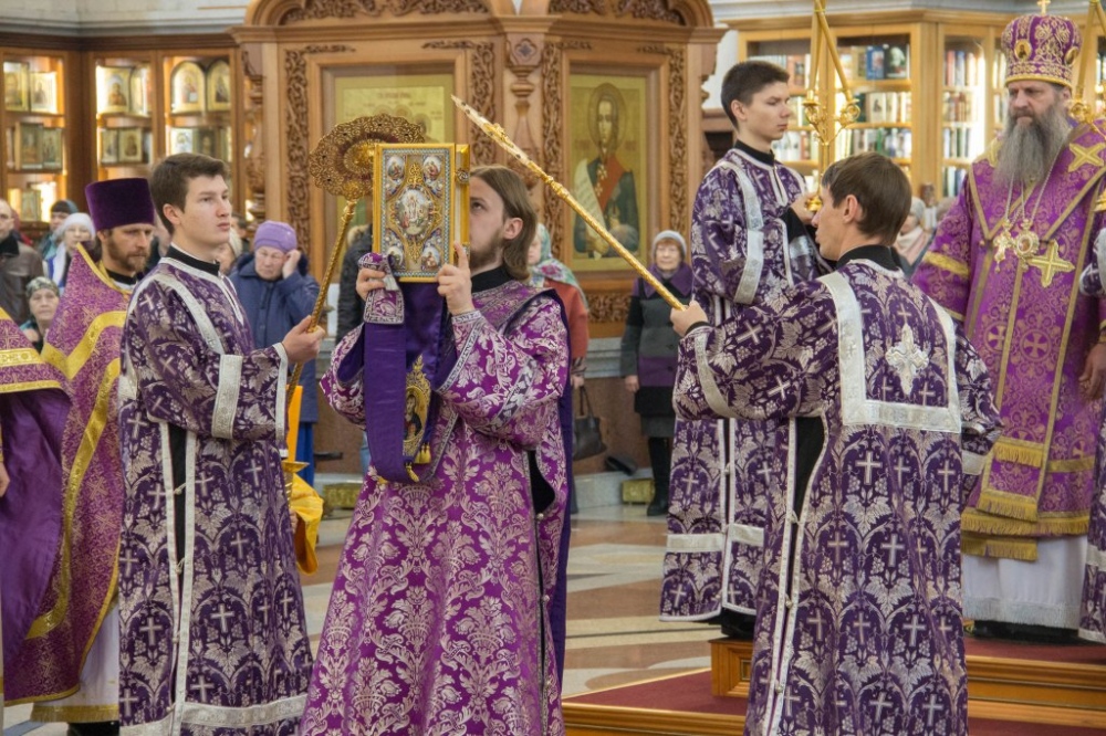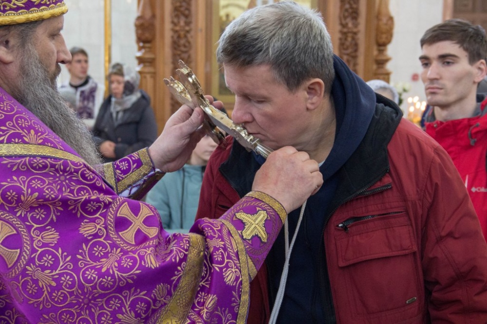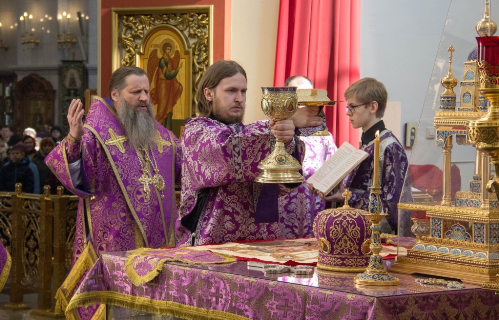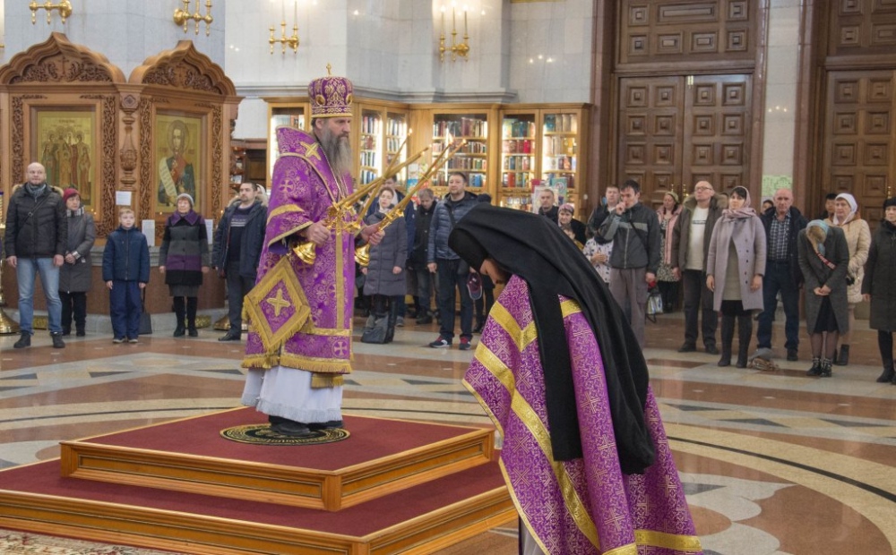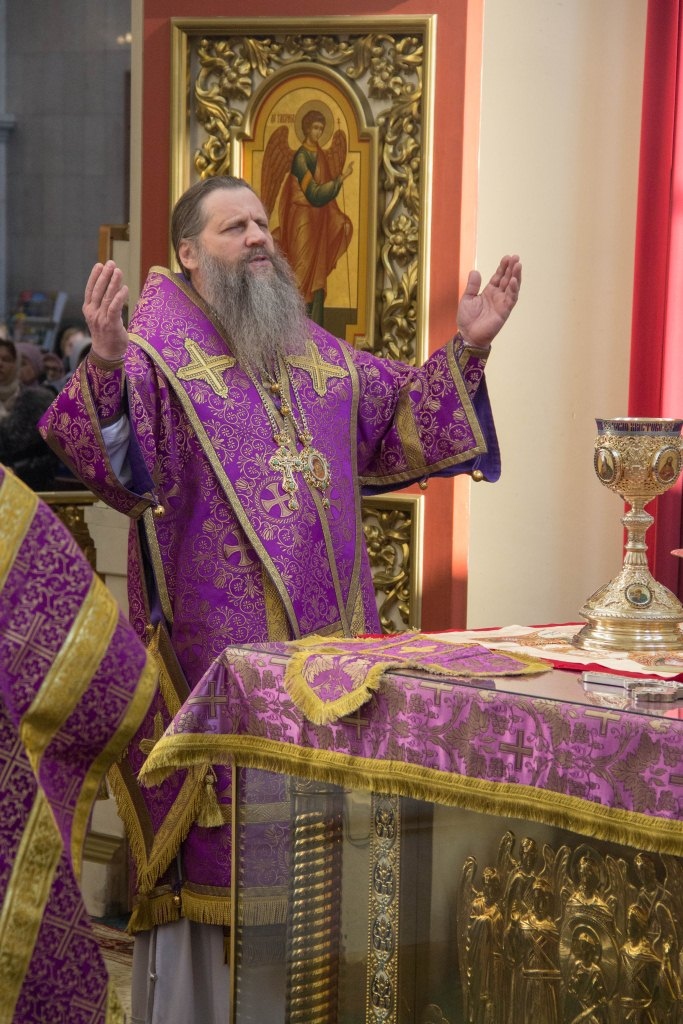 В Неделю Крестопоклонную митрополит Артемий совершил Божественную литургию в Спасо-Преображенском кафедральном соборе. 31 марта 2019 г.