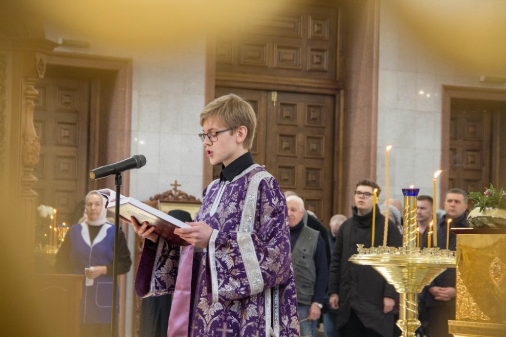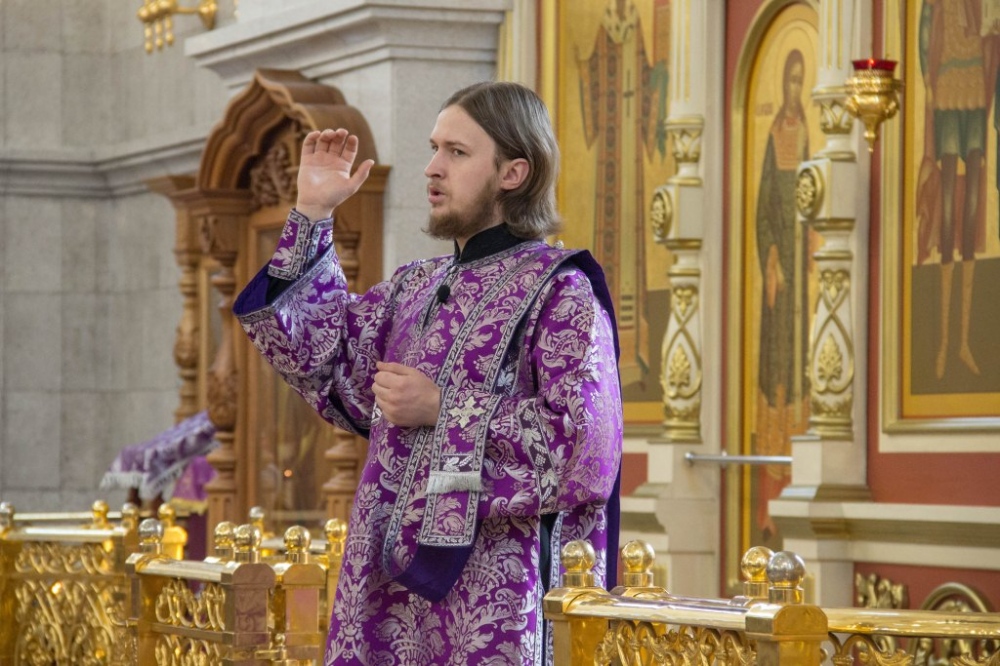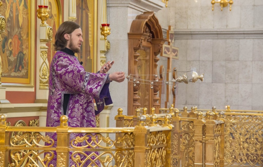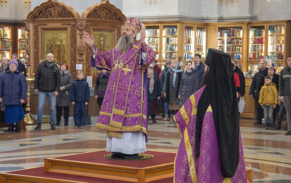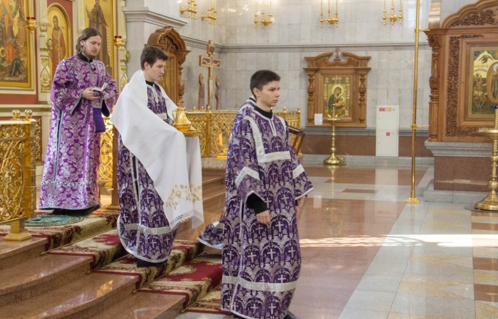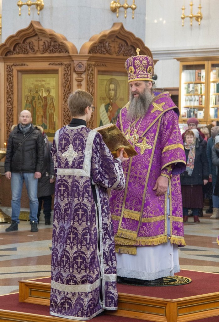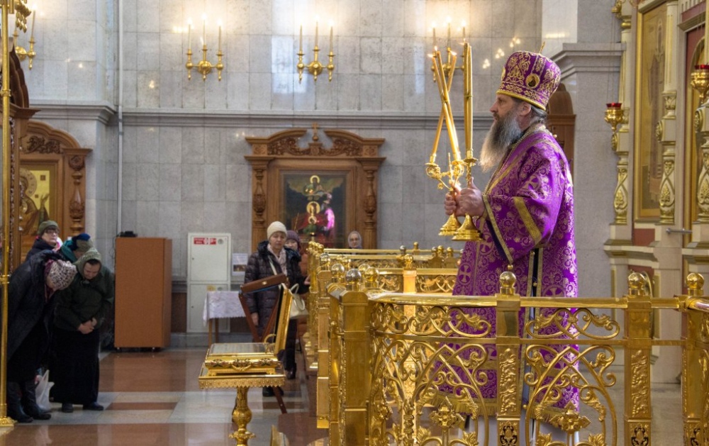 В Неделю Крестопоклонную митрополит Артемий совершил Божественную литургию в Спасо-Преображенском кафедральном соборе. 31 марта 2019 г.