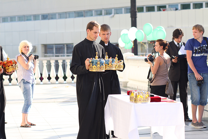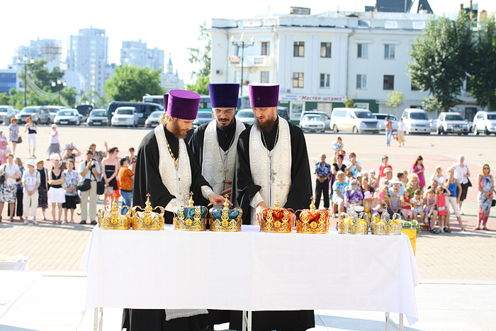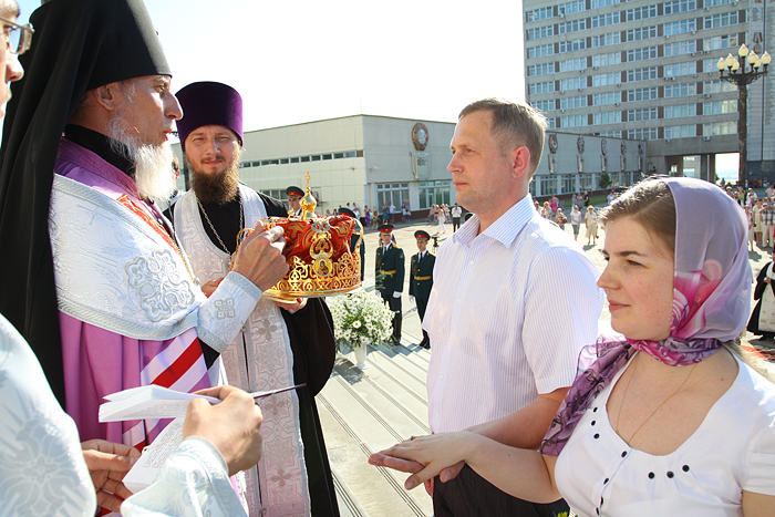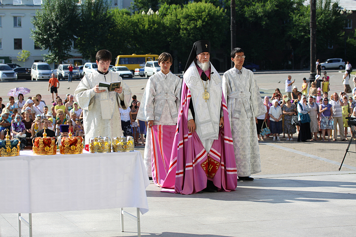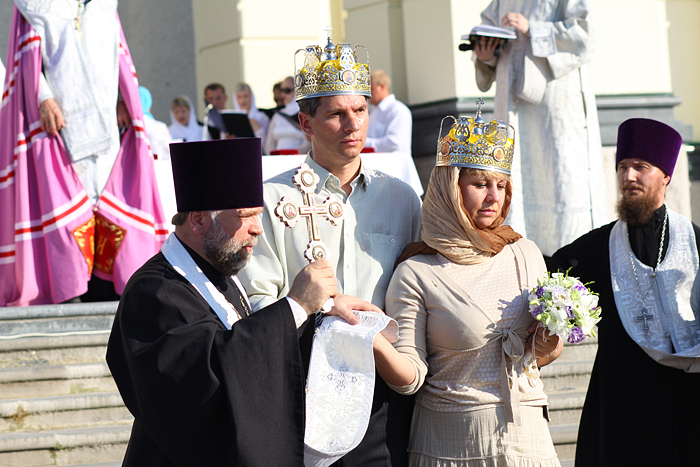 Праздник семьи, любви и верности в Хабаровске. Венчание супружеских пар архиепископом Хабаровским и Приамурским Игнатием. 17 июля 2011г.